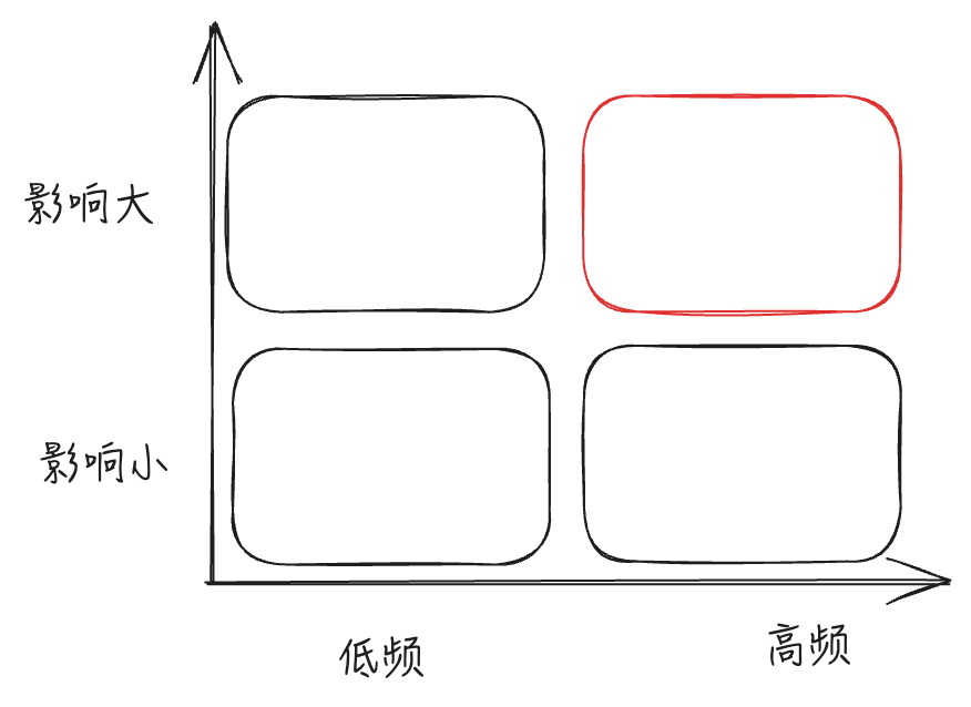 影响大 ×× 高频:重点关注,比如找工作时的面试复盘(高频-会有多长连续面试,影响大-影响就业)