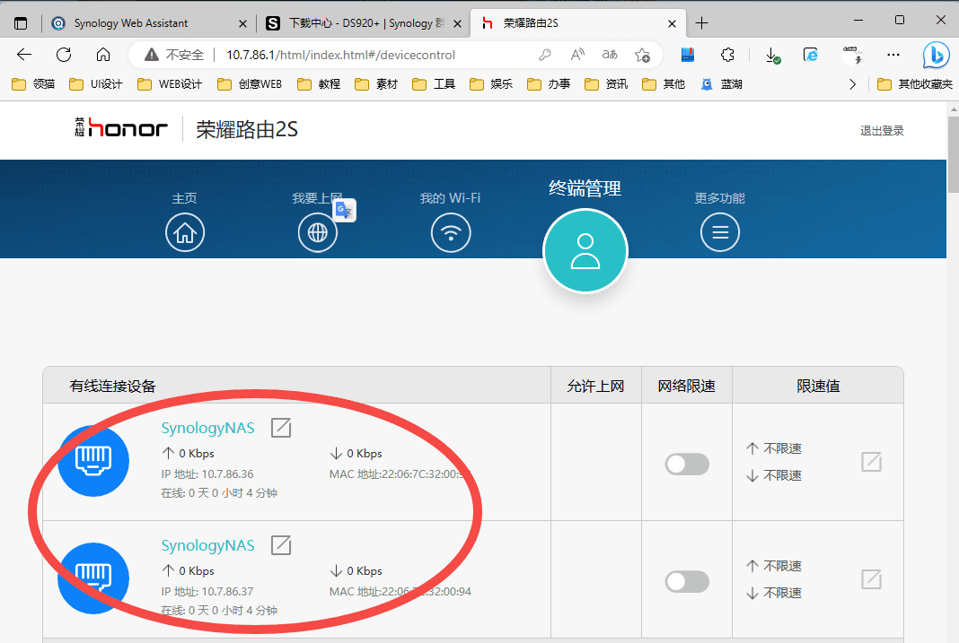 这里显示有两个有线连接的设备,OK一切正常,访问NAS IP。
