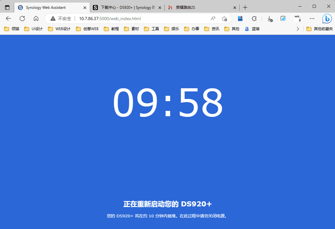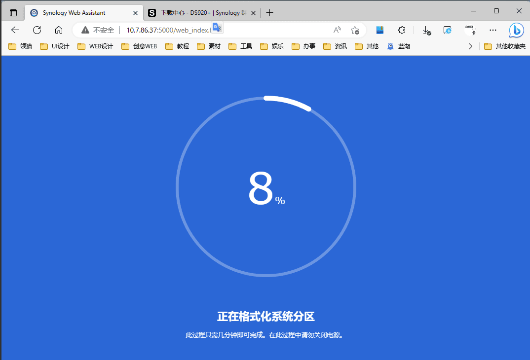 安装的过程是很快的,到重新启动界面等待有10分钟,比较漫长,需要耐心,千万不要跑去手动重启NAS机,你就等着…