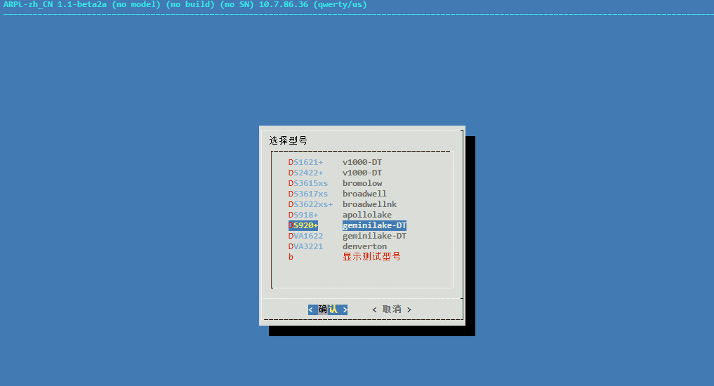 选择型号,点击确认后,回到主菜单选择该型号的DSM版本号。