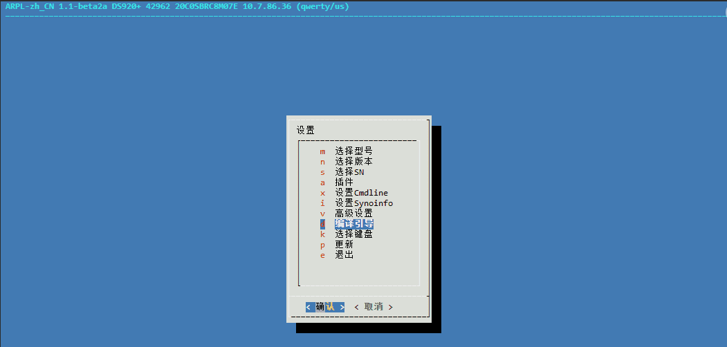 编译好后,会回到主菜单,光标到启动”,说明编译成功!我们直接选择启动,或者退出重启NAS主机即可。看到root@arpl..说引|导启动成功,这里可以看到型号DS920+、版本42962、访问IP等信息。