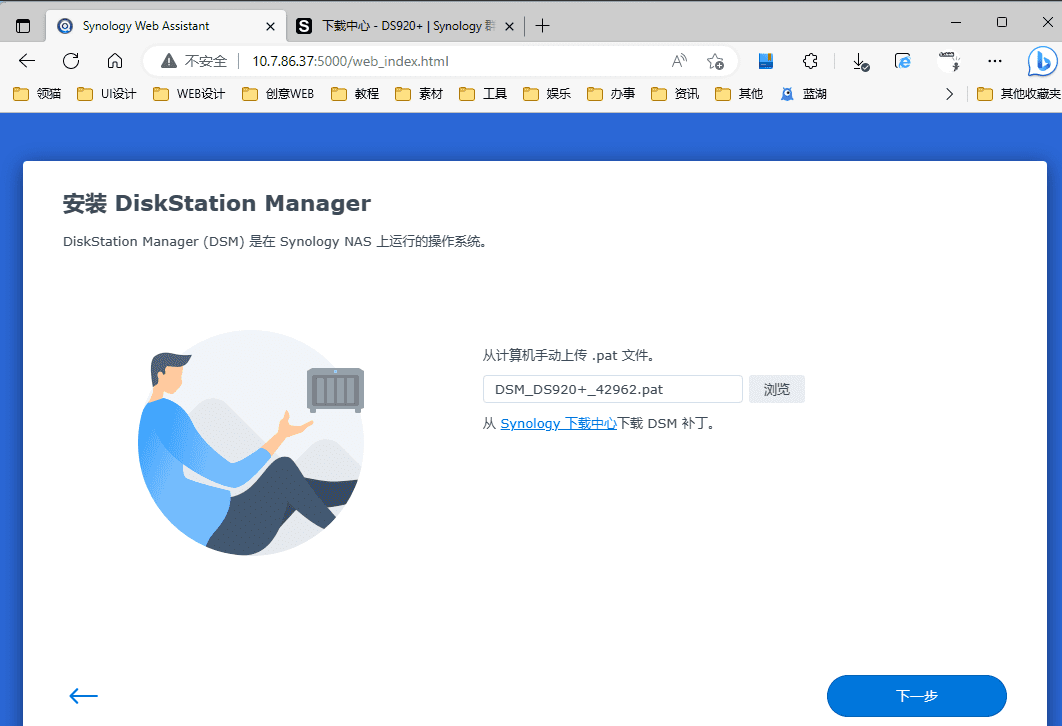 点击安装,来到选择系统文件界面,我们点击直接到群晖下载中心下载。